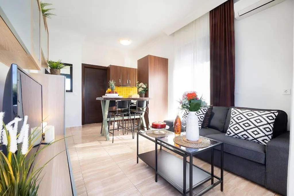 A fully equipped kitchen has all amenities needed for cooking, including a fridge, an oven, and kitchenware. The 40 m^2 apartment is 15 minutes' drive from Souda airport. There is a terrace as a spot to unwind.